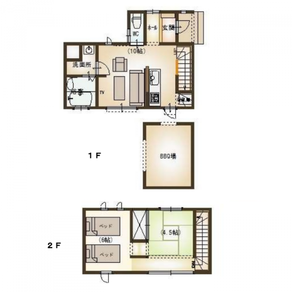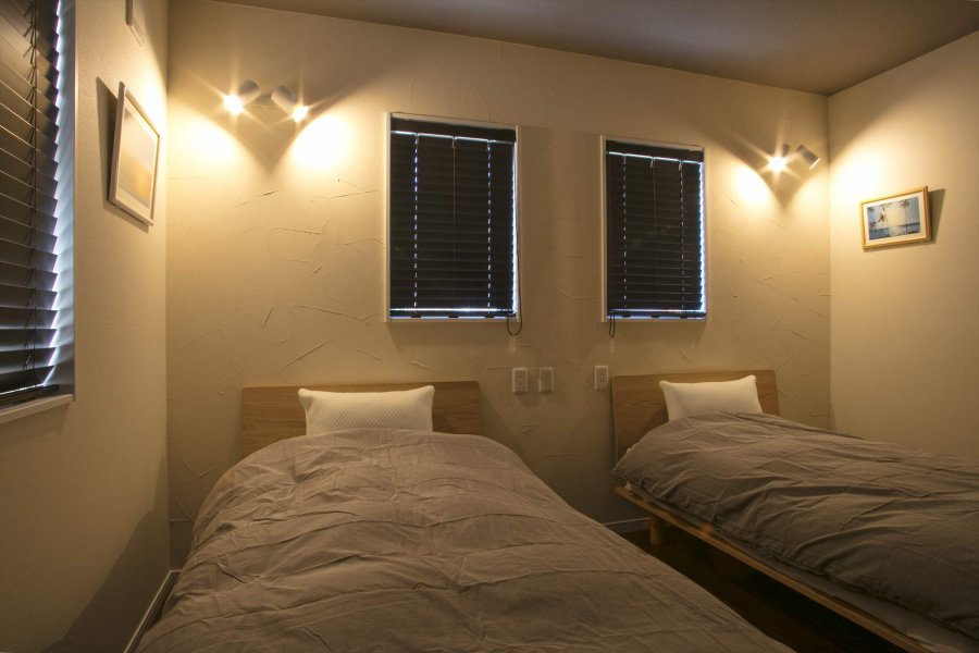 | 間取り | ベッドルーム:シングルベッド2台 和室:布団3式 リビングルーム キッチン BBQ専用テラス バスルーム(シャワー&バスタブ付) 洗面台:1 化粧室:1 |